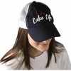 Baseball cap, made from 100% high-quality cotton and mesh, comes packaged in a plastic polybag with a hangtag. A strap at the back of the hat allows for adjusting. "Lake Life" text and accompanying oar icons are both embroidered into the front of the hat. Wash by hand only with a damp cloth. Set out in the sun to dry. Great for those who want to show their love of the lake.