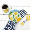- IN-HOUSE DESIGN: The wrap-around exterior design includes large-scale, brightly colored, vibrant, cheerful whole and sliced lemons, green leaves, and black polka dots. When the large, comfortable handle faces towards the right, the interior brim shows a handwritten styled "Every Day Is A Fresh Start" upbeat, happy, and encouraging sentiment.