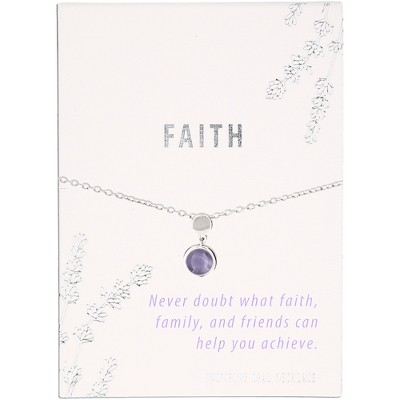 - PREMIUM QUALITY: Necklace is 16.5"-18.5" long. Lobster claw clasp closure with a movable pendant on a rhodium plated silver chain. Pendant is set in a round stone setting with silver trim and back plate. Comes packaged on a floral printed white card with sentiment that displays the necklace with the chain wrapped in back.