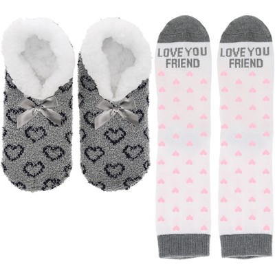 - CARE INSTRUCTIONS: To preserve the set’s quality, machine wash the socks on a gentle cycle with like colors, and hand wash the slippers. Lay flat to dry for best results.