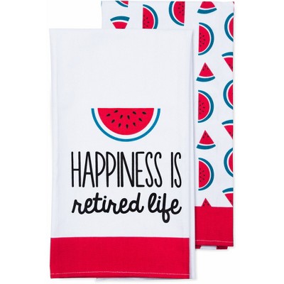 - PREMIUM QUALITY: 27.5" tall x 19.75" wide matching decorative tea towels come in a set of 2. Towels are made from a soft, absorbent, 240 GSM polyester microfiber. Neatly folded and packaged in a polybag with bow-tied ribbon and hangtag.