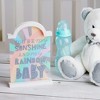 - IN-HOUSE DESIGN: "You're My Sunshine And My Rainbow, Baby" text and accompanying rainbow design are printed onto the front of the plaque.