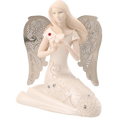 PREMIUM QUALITY: 3.5" angel figurine, packaged in a printed box, is made from polyresin and features finely meshed silver-plated wings.