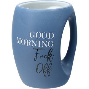 - IN-HOUSE DESIGN: "Good Morning Off" white and black sentiment decal on the front side of the matte blue cup. The Interior is white and has a glossy glaze prop 65 food-safe finish. We designed and created this mug to blend in with any of your kitchen's current drinkware collections with a refined, modern, and aesthetically pleasing look paired with humor and relatable sentiment.