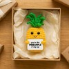 - IN-HOUSE DESIGN: Holding a stitched sentiment that reads, “You’re the PINEAPPLE of my eye,” this friendly fruit features a bright smile, structured leaf crown, and a joyful spirit. Every detail—from its ribbed texture to its cheerful face—was made to spread love and warmth.