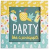 - IN-HOUSE DESIGN: "Party Like A Pineapple" text, pineapple, cherry, and fruit wedge pattern, "Sweet To The Core" text, and pineapple pattern are printed on the individual coasters.