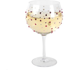 24 fl. oz. stemmed wine glass, packaged in a printed open-faced box with ribbon handle, is made from high-quality glass. Individual pink-colored glass gemstones are hand-placed onto glass. To best preserve decals, wash by hand only using mild detergent. Do not leave soaking in water. Great for those with birthdays in June.