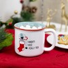 - IN-HOUSE DESIGN: The front of the mug features an adorable illustration of a dog holding a candy cane, hanging over a stocking. The playful checklist on the side humorously captures the holiday sentiment: "Naughty, Nice, I really tried. Inside, the rim is lined with a candy cane pattern, adding a festive surprise when drinking from the mug.