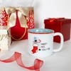 - PREMIUM QUALITY: This 18 oz glossy white ceramic mug is durable and practical, offering both dishwasher and microwave-safe convenience. The hand-painted red rim adds an elegant, festive touch while maintaining a sturdy, comfortable feel. The mug's large handle ensures an easy, comfortable grip, and the glossy finish enhances the overall modern look.