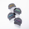 One-Size-Fits-Most dark gray baseball cap hat. It is made from 100% cotton and features weatherproof & rust-proof hardware. The small holes in the top of the hat section make it more breathable. In addition, the brim can be bent to the desired arch. This snap has an adjustable strap that can be tucked away into the backside of the hat. It features the "River" tri-color light green, dark green, and teal blue sentiment embroidered sewn in sentiment. In addition, a "WP" star-shaped logo is sewn into the side of the hat. Finally, a "Be Your Own Kind Of People" sentiment is screen printed on the hat's bottom brim. . Spot clean only; leave out in the sun to dry. It is packaged in a polybag with a plastic j hook and hangtag.