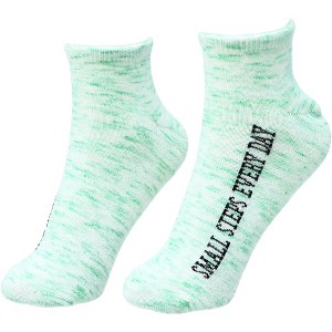 - IN-HOUSE DESIGN: Pastel-colored green ankle socks with a blended white/color design. The sentiment "Small Steps Every Day" is printed on the side of the foot in black printed on text. Bottoms of socks have a non-slip super cute floral patterned bottom that prevents you from slipping.