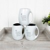 - PREMIUM QUALITY: This 16 oz hand-warming stoneware mug has an organic-shaped lip, a neutral white exterior, a gray dotted pattern & a gray interior. Large comfortable handle to fit almost anyone's hands - sentiment facing towards you when held in your right hand and outward when held in the left hand. The back has a simplistic embossed heart near the handle at the base.