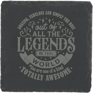 - PREMIUM QUALITY: This 4" x 4" slate coaster features engraved detailing and foam feet for stability. Its durable slate design makes it both functional and stylish, with the sentiment "Amazing, Fabulous And Simply The Best Out Of All Legends In This World You Are One Of A Kind Totally Awesome" deeply engraved for a lasting impression.
