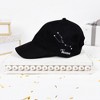 Unisex one-size-fits-most baseball hats are made from 100% cotton and feature weatherproof & rust-proof metal snap and adjustable brass clasp hardware. The adjustable strap can be tucked away into the backside hat. Each of the five sections on the cap has a small hole for your head to breathe. Protect your eyes and head in style. The front of the black hat featured a white celestial birth sign embroidered in white. The right side of the hat features a white "Taurus" sentiment along with a zodiac constellation featuring stars and gem details also embroidered in white. Spot clean only and lay flat to dry. Packaged in a plastic polybag with a hang tag.