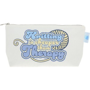 The "Knitting Therapy" Zipper Bag by Pavilion’s Hook, Knit, & Wit collection is the perfect blend of functionality and charm for any knitting enthusiast. Designed with a durable 100% cotton exterior and a soft 100% polyester interior lining, this 11.75" x 6.25" x 4.25" bag provides ample space for all your knitting essentials or personal items, from yarn and knitting needles to cosmetics and travel necessities. The playful sentiment “Knitting is Cheaper than Therapy” is featured on the front, accompanied by a whimsical yarn ball design, making this bag an ideal companion for those who find comfort and joy in their crafting. The interior, lined with a matching blue and cream yarn pattern, adds an extra layer of detail that knitters will love. With high-quality silver zipper hardware, this bag ensures a secure closure, making it easy to take your supplies on the go. This zipper bag makes a thoughtful gift for knitters, crafters, or anyone who appreciates a bit of humor and creativity in their daily accessories. It’s the perfect size for travel or organizing small essentials, blending style and practicality effortlessly. Packaged with a hang tag and enclosed in a plastic polybag for protection, it arrives ready for gifting to friends, family, or fellow crafting enthusiasts. Machine washable on a gentle cycle, it’s easy to maintain and keep looking fresh, making it a practical and fun addition to any crafter’s collection. Explore the Hook, Knit, & Wit collection for more whimsical, craft-inspired gifts designed to bring joy and laughter to the everyday lives of those who love to create.
