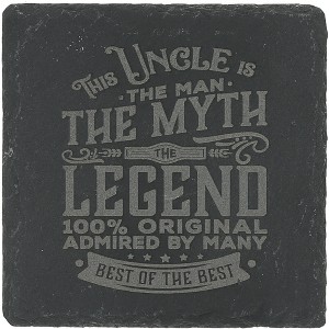 - PREMIUM QUALITY: This 4" x 4" slate coaster features engraved detailing and foam feet for stability. Its durable slate design makes it both functional and stylish, with the sentiment "This Uncle Is The Man The Myth The Legend 100% Original Admired By Many Best Of The Best" deeply engraved for a lasting impression.