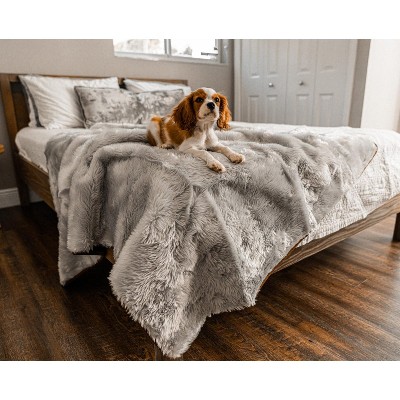 The PupProtector Waterproof Throw Blanket is a patent pending blanket designed as a waterproof, machine washable and great looking option to protect your furniture, car seats, dog beds and other areas from pet hair, dirt, spills and scratching damage all while blending seamlessly into your home decor. The internal waterproof membrane provides extra protection against damage and stains, effectively preventing liquids from seeping through. With plush faux fur on one side and ultra-soft microsuede on the other, your pup will nap in the lap of luxury. It s also an ideal option for protecting your car seats while you travel with your furry friend! The stylish pet blanket comes in two unique colors that blend seamlessly into home decor and also matches perfectly with our PupRug Faux Fur Orthopedic Dog Beds and PupRug Runner Faux Fur Memory Foam Dog Beds.