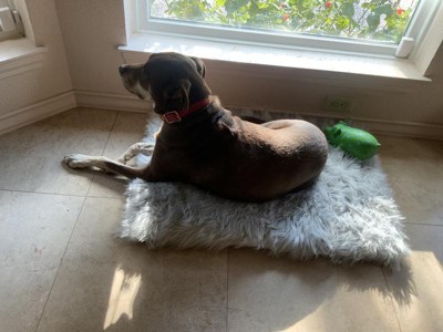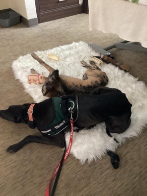 [This review was collected as part of a promotion.] My dog loves this rug…..she is very happy!