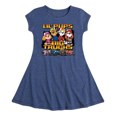 Paw Patrol - Big Truck Pups - Toddler and Youth Girls A-line Dress - Join the Paw Patrol with graphic apparel that showcases your favorite pups—Chase, Marshall, Skye, and Rubble—ready to save Adventure Bay with their heroic adventures!