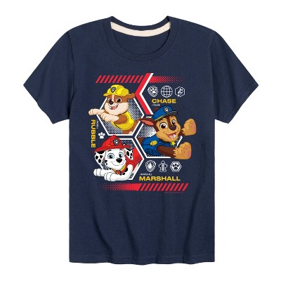 Paw Patrol - Chase Rubble Marshall Hexagons - Toddler & Youth Girls Short Sleeve Graphic T-Shirt - Join the Paw Patrol with graphic apparel that showcases your favorite pups—Chase, Marshall, Skye, and Rubble—ready to save Adventure Bay with their heroic adventures!