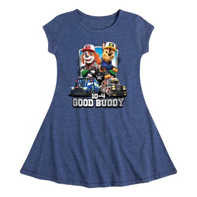 Paw Patrol - Daddy's Pawsome Camping Buddy - Toddler And Youth Girls Fit And Flare Dress - Join the Paw Patrol with graphic apparel that showcases your favorite pups—Chase, Marshall, Skye, and Rubble—ready to save Adventure Bay with their heroic adventures!