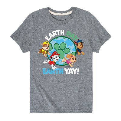 Girls' Paw Patrol Earth Day Yay Shirt Tail Raglan Graphic T-shirt - Athletic Heather/Fuchsia - Large