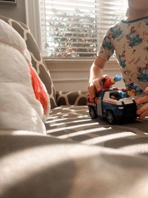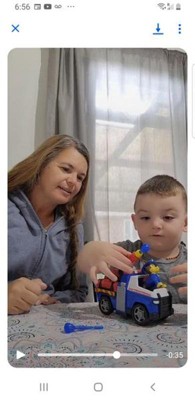 My son loves this toy. I love that chase clicks into the truck so he can drive it around. The little target shoots out pretty far but not painful. Super cute and fun