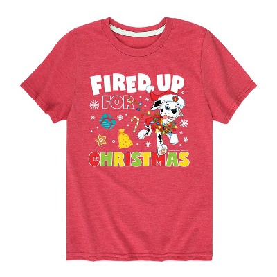 Paw Patrol - Fired Up For Christmas - Toddler And Youth Long Sleeve Graphic T-Shirt - Join the Paw Patrol with graphic apparel that showcases your favorite pups—Chase, Marshall, Skye, and Rubble—ready to save Adventure Bay with their heroic adventures!