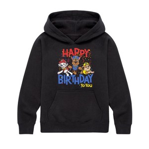 Paw Patrol - Happy Birthday - Toddler And Youth Pullover Hooded Fleece Sweatshirt - Join the Paw Patrol with graphic apparel that showcases your favorite pups—Chase, Marshall, Skye, and Rubble—ready to save Adventure Bay with their heroic adventures!