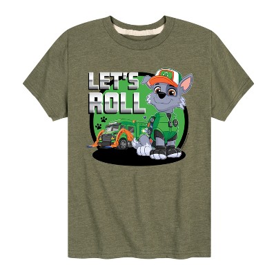 Paw Patrol - Let's Roll Rocky - Toddler And Youth Short Sleeve Graphic T-Shirt - Join the Paw Patrol with graphic apparel that showcases your favorite pups—Chase, Marshall, Skye, and Rubble—ready to save Adventure Bay with their heroic adventures!