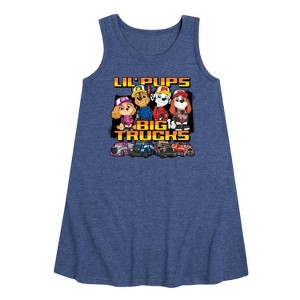 Paw Patrol - Lil Pups Big Trucks - Toddler and Youth Girls A-line Dress - Join the Paw Patrol with graphic apparel that showcases your favorite pups—Chase, Marshall, Skye, and Rubble—ready to save Adventure Bay with their heroic adventures!