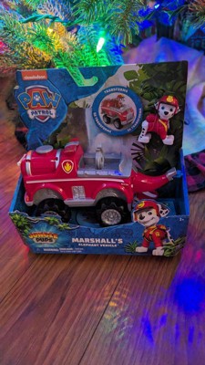 Get ready for exciting rescue adventures with Marshall, in his Elephant-themed Jungle Pups rescue vehicle! Marshall’s vehicle features an exciting transformation into rescue mode by pushing down the light bar on Marshall’s elephant vehicle, to reveal his vehicles elephant trunk and tusks, then using the trunk to clear away any obstacles and extending the rescue ladder to get to hard to reach places! For even more fun and exciting PAW Patrol series-inspired missions, collect all the PAW Patrol Jungle Pups toys and the PAW Patrol: The Mighty Movie toys, like the awesome Aircraft Carrier HQ and all the special edition PAW patrol toys for girls and boys, like the Mighty Pups, Aqua Pups and Big Truck Pups toy figures and playsets (each sold separately). With PAW Patrol preschool toys, a kid can explore his or her imagination, and develop their motor skills through pretend play, as they relive their favorite scenes from the shows. Enjoy endless PAWsome adventures with Marshall and his Jungle Pups Elephant Vehicle! Includes: 1 Vehicle, 1 Figure