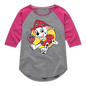 Girls' - Paw Patrol - Marshall Sketch Shirt Tail Raglan Graphic T-shirt - 1 of 4