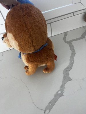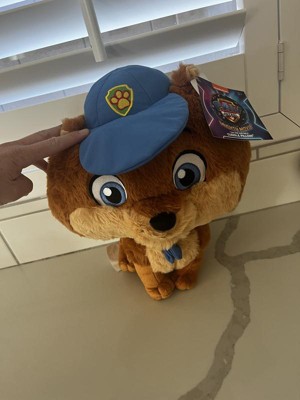 This is a nice sized plush for kids and seems to be made a good quality. It is squishy, not super firm or so soft the stuffing matts into nothing. The brand paw patrol is recognizable but slightly more playful in look. My son is nine and still loves a cuddly plush animal to sleep with and this was a great addition to his collection.