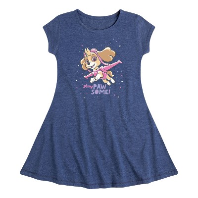 Paw Patrol Pawsome Friends Fit & Flair Cap Sleeve Graphic Dress - Heather Navy - 2T