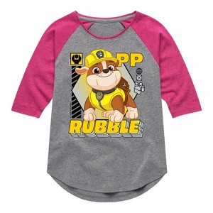 Paw Patrol - Rubble Graphic - Toddler & Youth Girls Raglan Graphic T-Shirt - Join the Paw Patrol with graphic apparel that showcases your favorite pups—Chase, Marshall, Skye, and Rubble—ready to save Adventure Bay with their heroic adventures!