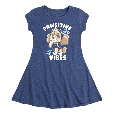 Paw Patrol Skye Conversation Hearts Fit & Flair Cap Sleeve Graphic Dress - Heather Navy - 4T