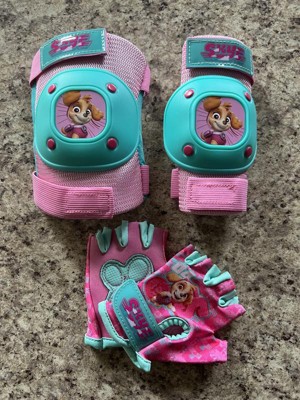 This pad set is great - comes with a set of elbow and knee pads, as well as a pair of gloves. I got the Paw Patrol Skye set for my god-daughter and she absolutely loves it. She loves Paw Patrol and everything pink, so this was perfect for her. The set is made very well and we have no complaints thus far!