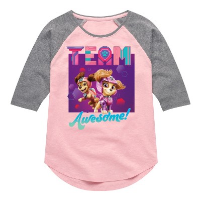 Paw Patrol - Soar - Toddler And Youth Girls Raglan Graphic T-Shirt - Join the Paw Patrol with graphic apparel that showcases your favorite pups—Chase, Marshall, Skye, and Rubble—ready to save Adventure Bay with their heroic adventures!
