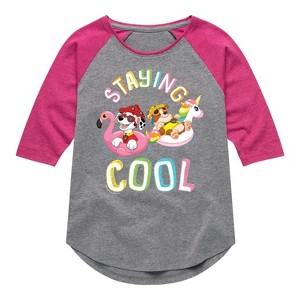 Paw Patrol - Staying Cool - Toddler & Youth Girls Raglan Graphic T-Shirt - Join the Paw Patrol with graphic apparel that showcases your favorite pups—Chase, Marshall, Skye, and Rubble—ready to save Adventure Bay with their heroic adventures!