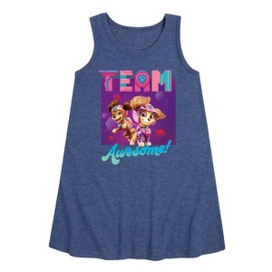 Paw Patrol - Team Awesome - Toddler and Youth Girls A-line Dress - Join the Paw Patrol with graphic apparel that showcases your favorite pups—Chase, Marshall, Skye, and Rubble—ready to save Adventure Bay with their heroic adventures!