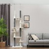 Transform your home into a feline paradise with the PawHut Cat Tree. This floor-to-ceiling tower adjusts from 88.6" to 100.4" high, maximizing vertical space and minimizing floor space used. It ensures stability with an anti-tip device that attaches it to the wall. It features cozy hammocks and multiple perches for a wonderful blend of fun and comfort. Covered in soft plush, it keeps cats entertained and relaxed.