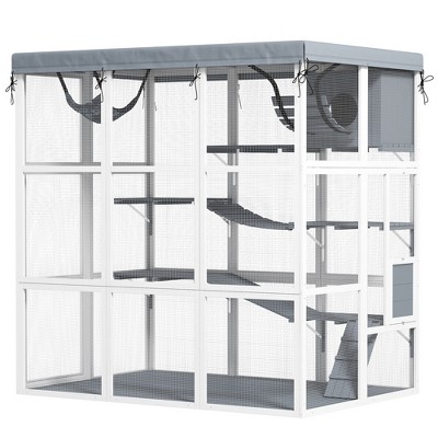 Transform your cat's life with the PawHut catio! This cat run expands your furry friend's world, allowing safe, nature-filled adventures. Equipped with a safety net, it shields your cat from dangers while offering ample space on its 3-tier design, including jumping platforms. Suitable for 2-3 cats to explore the great outdoors securely.