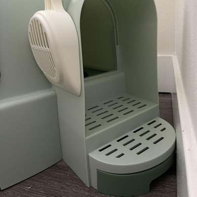 - Easy Access: It includes a spacious side door that enables effortless entry and exit for your cat. Two steps and a removable tray below the door of the kitty litter box prevent litter tracking when cats leave the box.