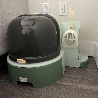 PawHut Covered Litter Box, Easy to Clean Open Including and Openable Front Cover & Litter Scoop, Green