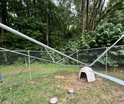 I bought this kennel and used it for one month before we had a rain storm. All it took was one rain shower to break this thing. I contacted Target and the company and they both told me unless I could send it back, which was impossible as it was broken and massive, they could do absolutely nothing. Target told me to contact the third party seller and the third party seller told me to contact Target. It’s unbelievable. Do not buy this absolute garbage.