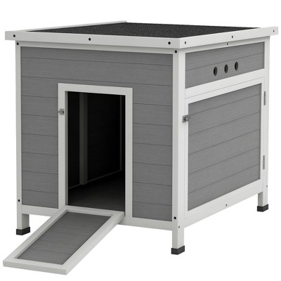 PawHut Duck Coop, Wooden Duck House, Outdoor Small Animal House with Openable Roof, Double Doors, Removable Base for 1-3 Ducks, Light Gray