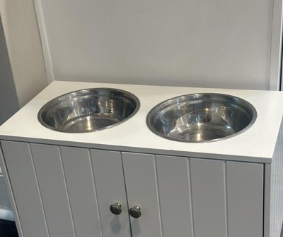 Such a great dog feeding cabinet. It’s held up for us for years. The wood is slightly starting to bend a bit from water damage but overall not awful. It’s been very easy to clean and has a lot if space for treats in the cabinet space as well. Would definitely buy again or recommend!
