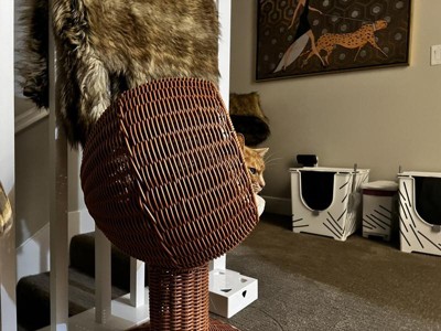 This cat bed combines style and functionality, making it a great addition to any home. While some guests found it smaller than expected, many noted that their cats loved it and found it comfortable. The bed is easy to assemble and features a sturdy design, which adds to its appeal. Guests appreciate its unique look, which blends well with home decor, and the soft pillow enhances the overall experience for their pets.