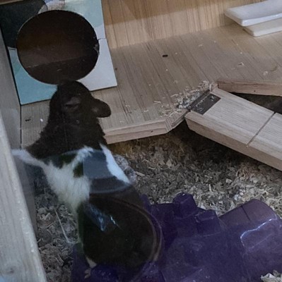 The hamster cage is spacious and well-suited for various small pets, offering ample room for burrowing and playing. While many guests appreciate its design and ease of assembly, some have encountered issues with damaged parts and unclear instructions. Overall, it provides a comfortable and attractive habitat for pets, though improvements in quality control and instructions could enhance the experience.